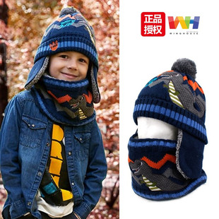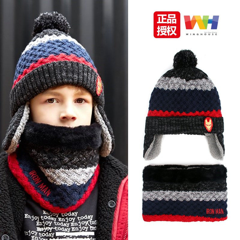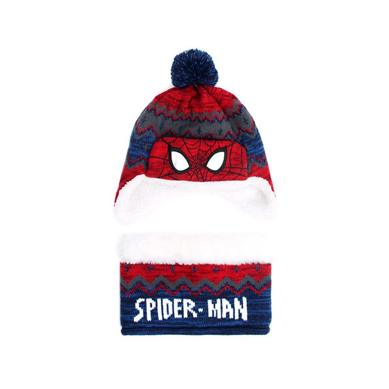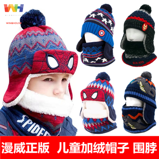 韩国儿童帽子围巾秋冬季 男童护耳帽保暖蜘蛛侠东北帽宝宝围脖一体