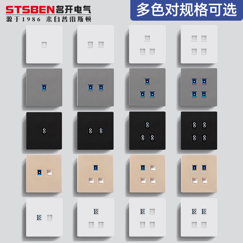 86型网线面板网络电脑插座超五六类千兆信息双接口网线光纤二合一