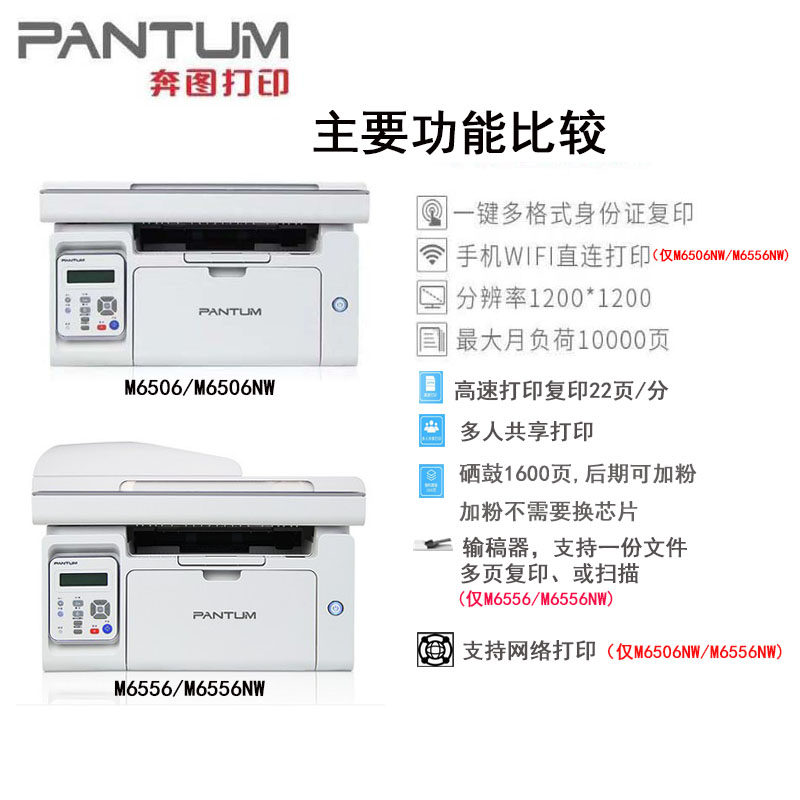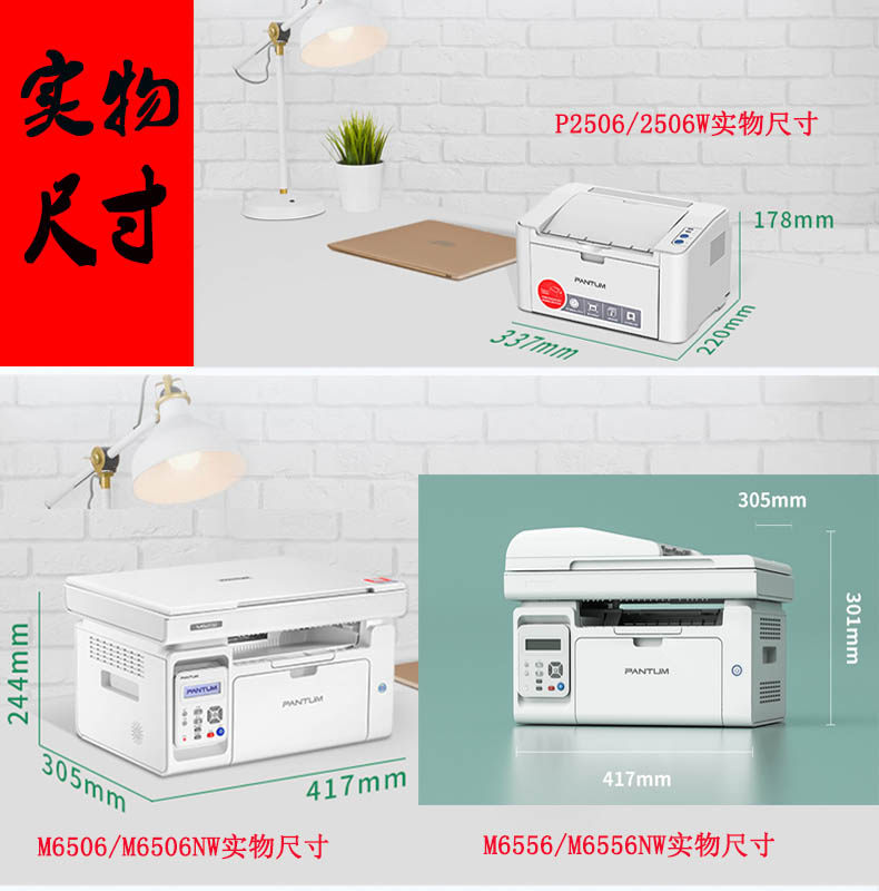 奔图M6506NW手机无线WIFI学生家用P2506W办公激光打印一体机M6556