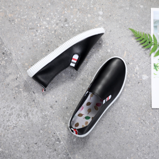 网红学生运动女平底鞋 护士鞋 皮面小白鞋 单鞋 春秋一脚蹬休闲豆豆鞋