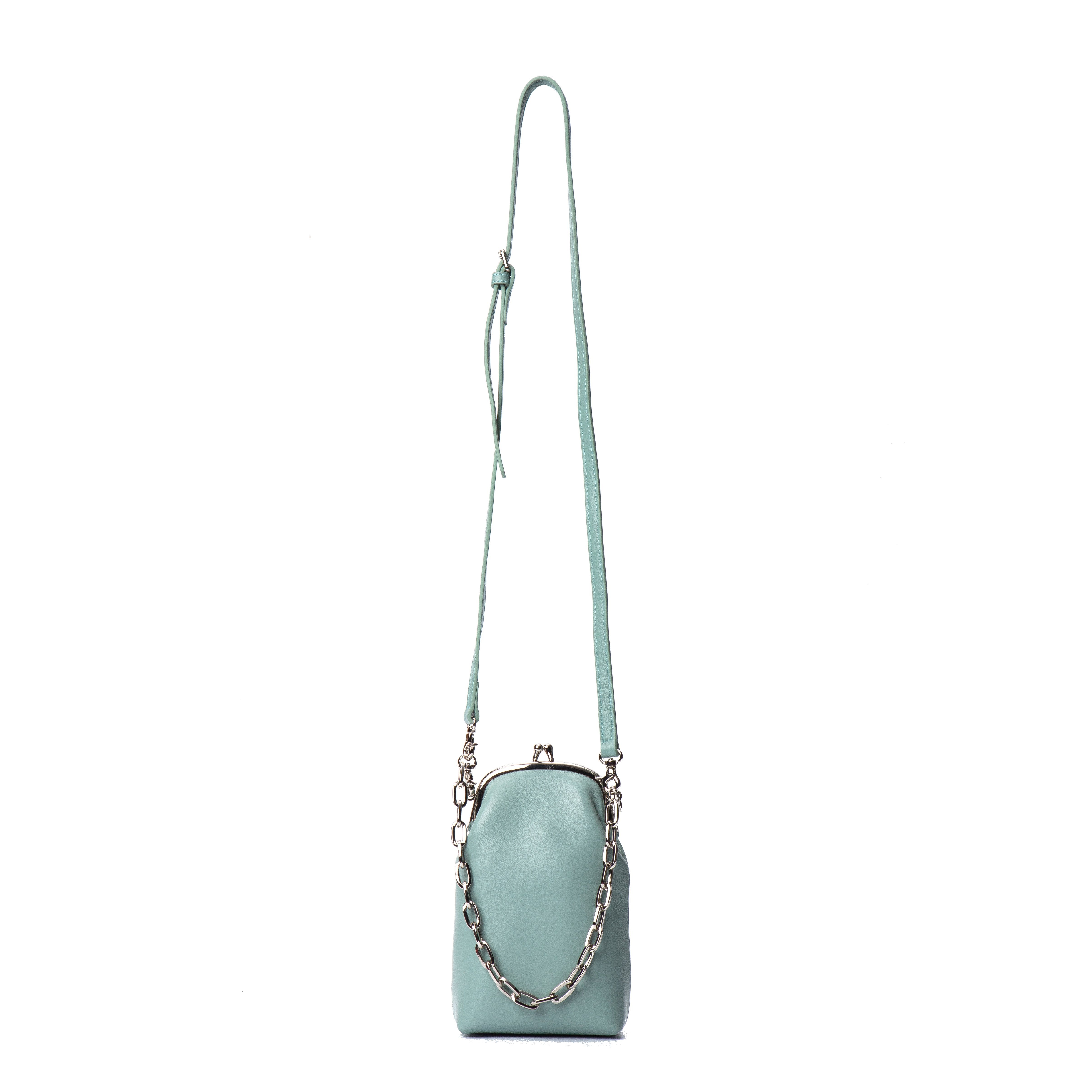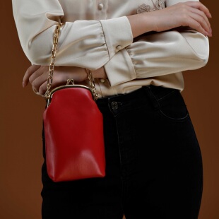 羊皮口金手机包 摩登复古 红色 绿色 斜跨手提 COIN 水蓝色 QIAN