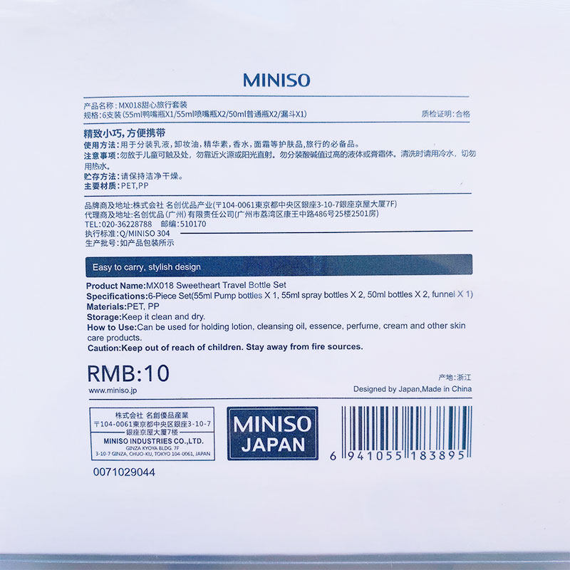 小样空瓶子 瓶旅行出差便携按压式 miniso名创优品甜心旅行套装 分装