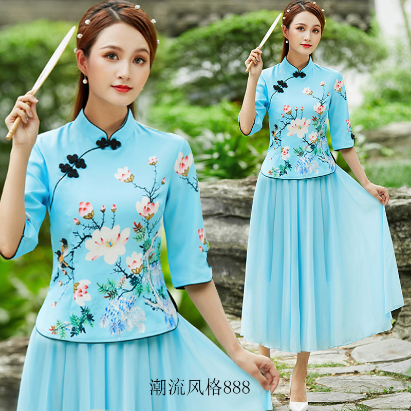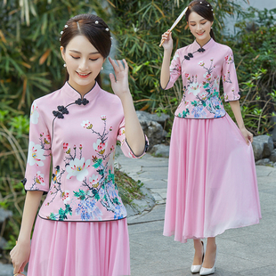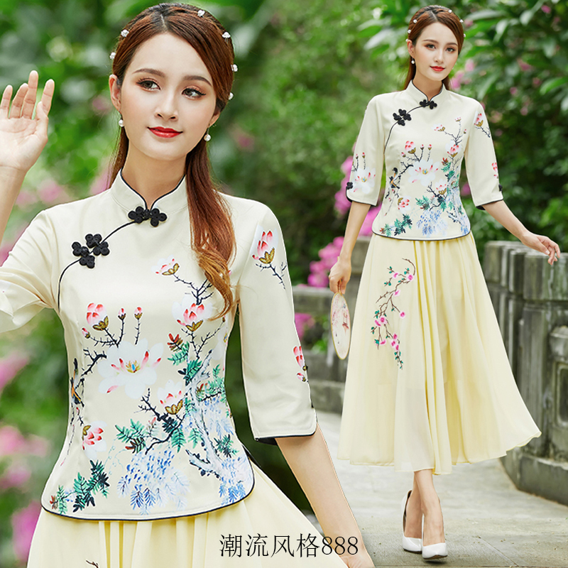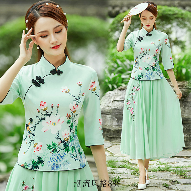 改良盘扣旗袍女上衣民国风唐装 连衣裙 复古民族中国风汉服两件套装