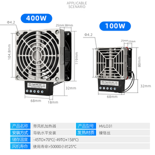 带风机加热器HVL031 100W150W200W300W400W配电机柜PTC除湿加热板