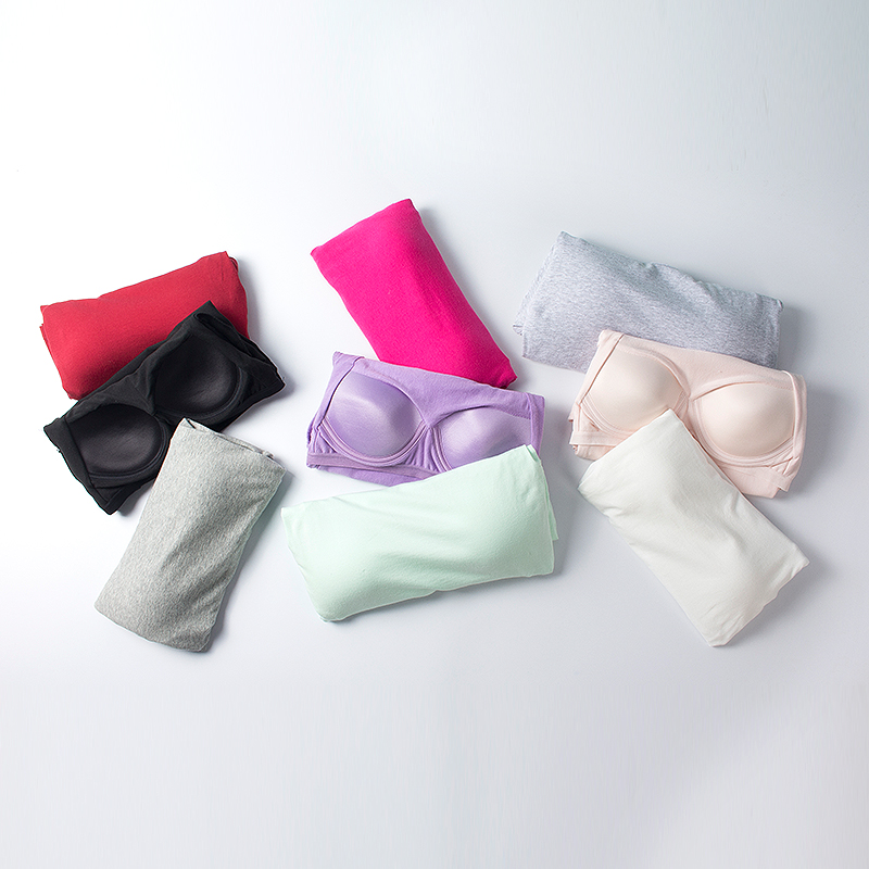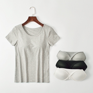 家居服上衣 睡衣免文胸罩杯一体打底衫 女夏纯棉带胸垫短袖 T恤半袖
