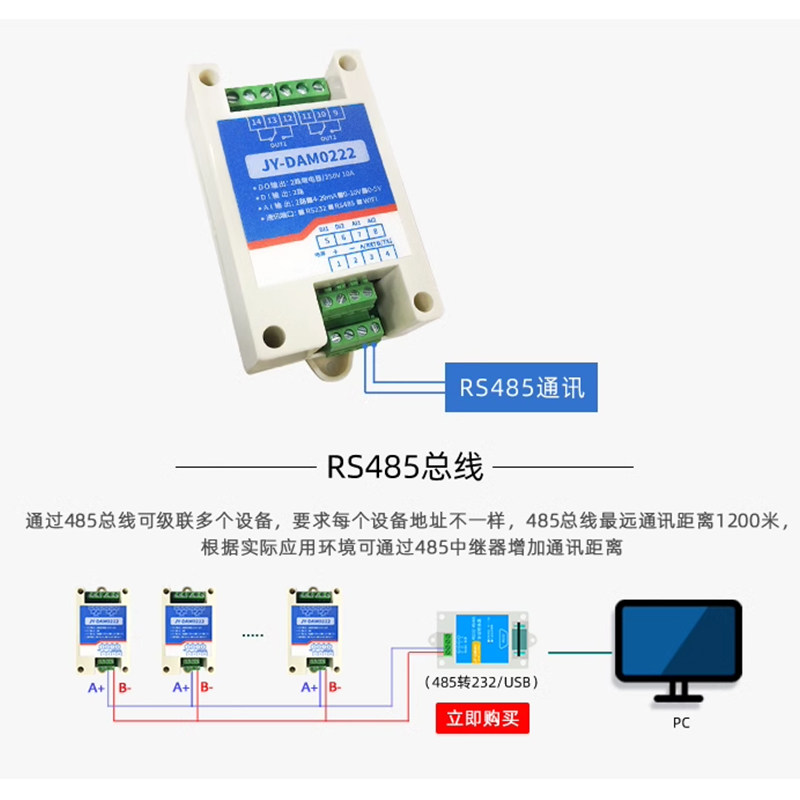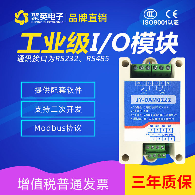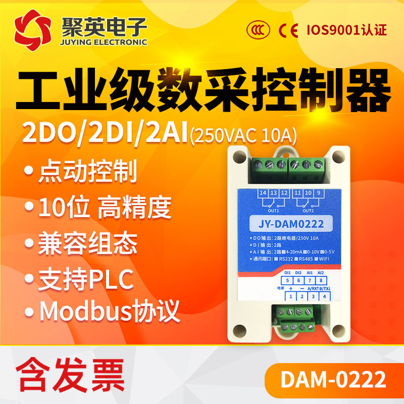 聚英2路继电器输出模拟量开关量采集控制器RS232RS485接口DAM0222