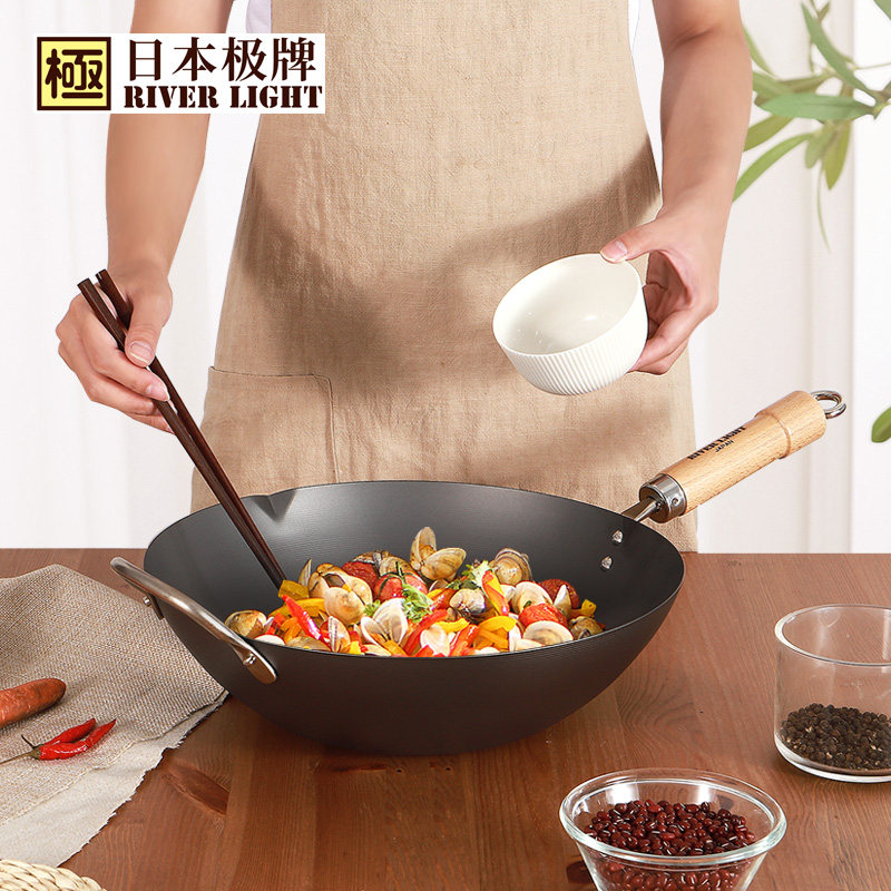 36专柜款 日本极牌riverlight无涂层炒锅北京锅燃气通用铁锅30