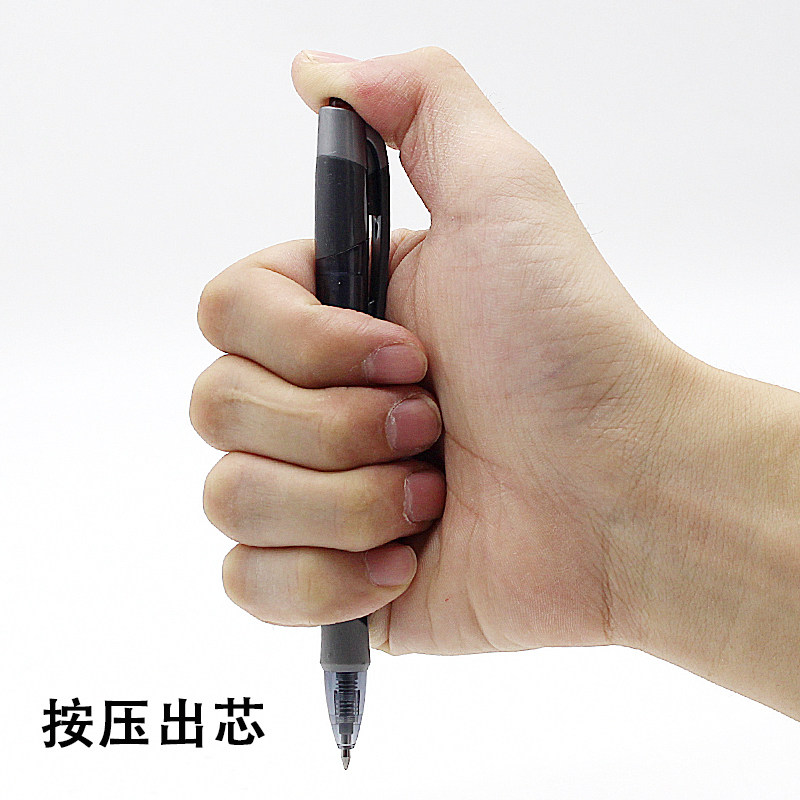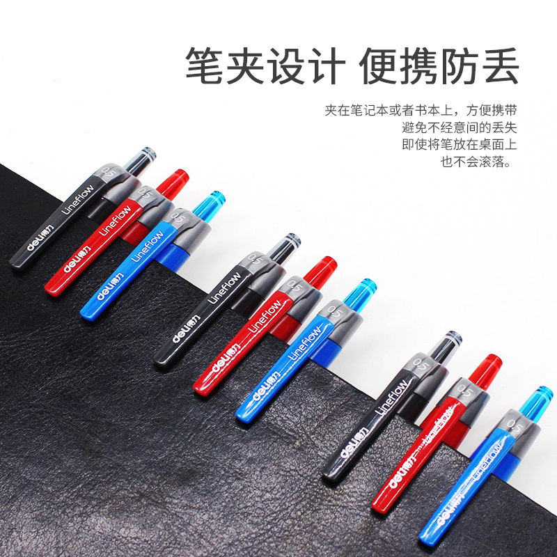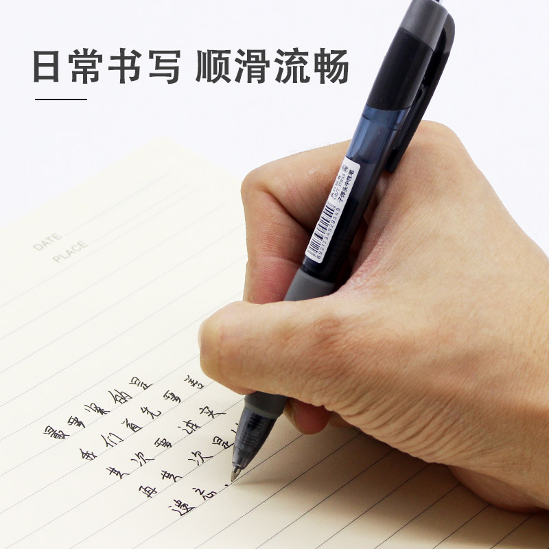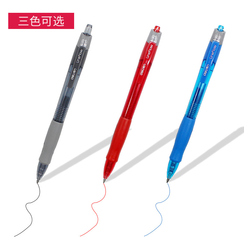 得力S08中性笔黑色0.5水笔按动商务按动式 签字笔文艺商务按压子弹头学生练字笔碳素笔 黑色红色蓝色笔简约经典
