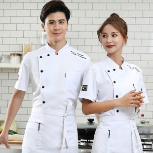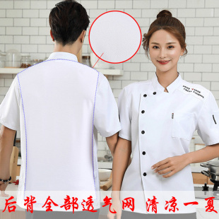 食堂后厨厨房衣服酒店工装 厨师工作服男短袖 长袖 透气餐饮服装 夏季