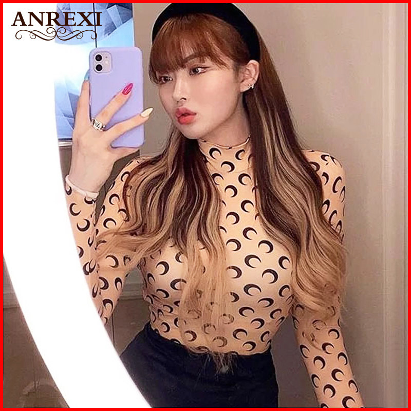 月亮半高领打底衫 t恤弹力半高领防晒小衫 衣服女春长袖 宋智雅同款