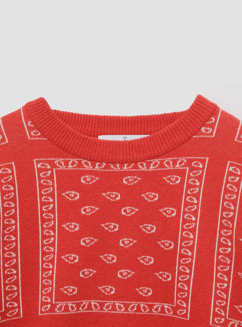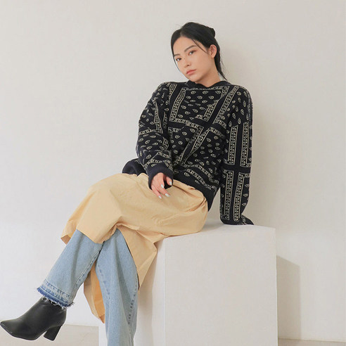 现货韩国stylenanda秋季 制作商品 宽松圆领套头花色羊毛针织衫