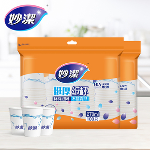 美丽雅一次性杯子加厚家用办公室喝水咖啡纸杯水杯本色无异味