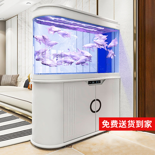 森森子弹头屏风隔断鱼缸客厅家用大型热弯水族箱玻璃生态底滤鱼缸