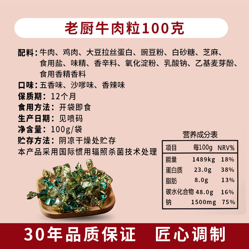 老厨牛肉粒100g香辣五香沙嗲口味牛肉干办公室小包装 零食休闲小吃