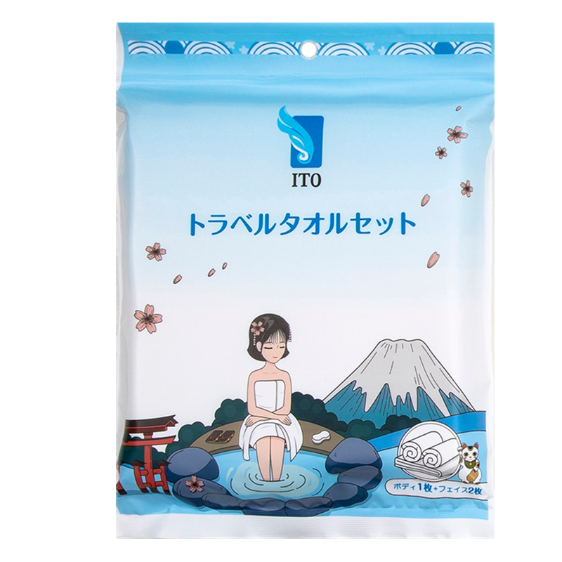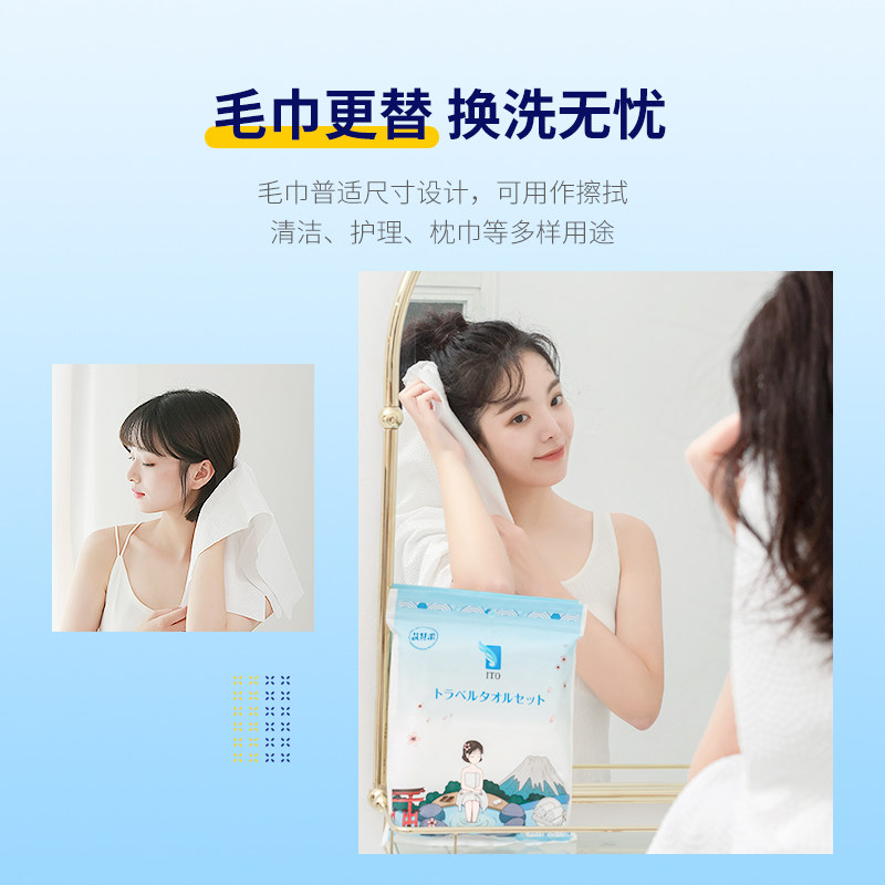 2件减5日本ITO浴巾旅行一次性棉吸水洗澡1浴巾2毛巾套装 便携加厚
