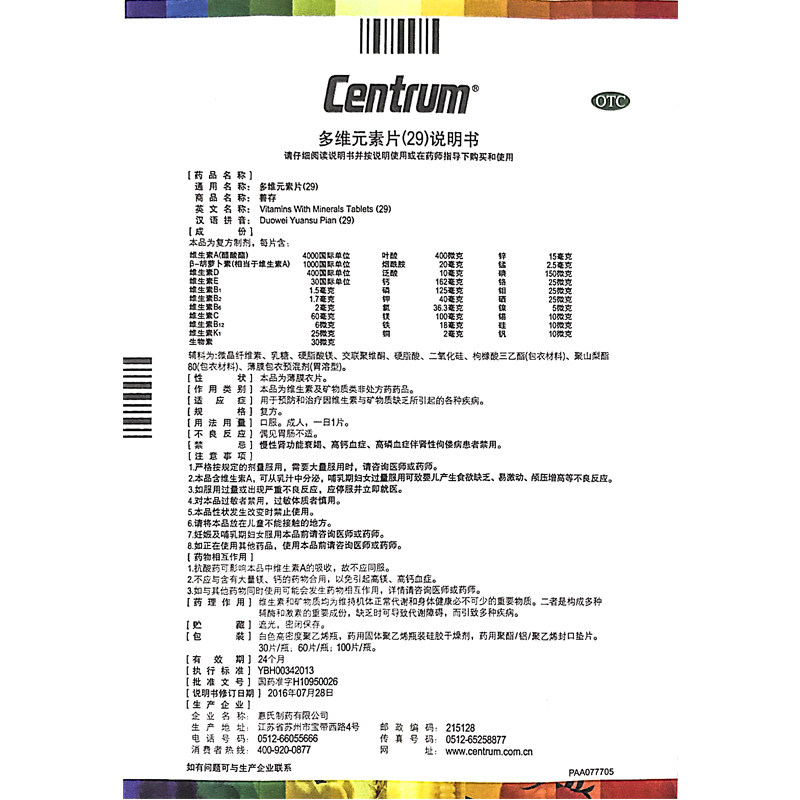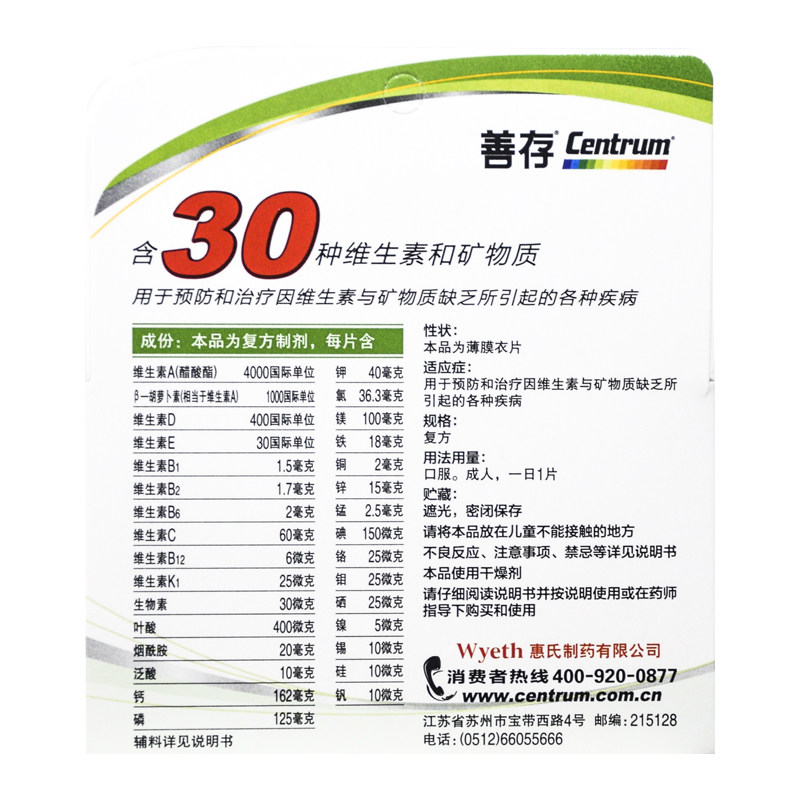 多维元 1瓶 素片 60片 盒 惠氏善存
