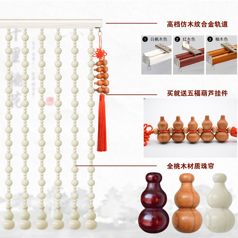 全桃木门帘葫芦珠帘风水帘卫生间隔断帘子客厅过道厨房遮挡免打孔