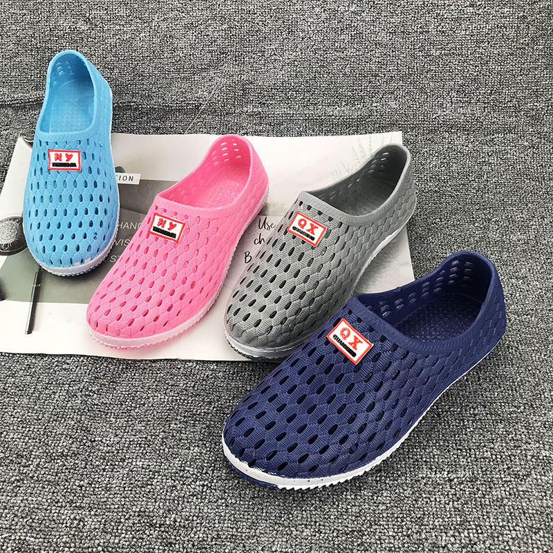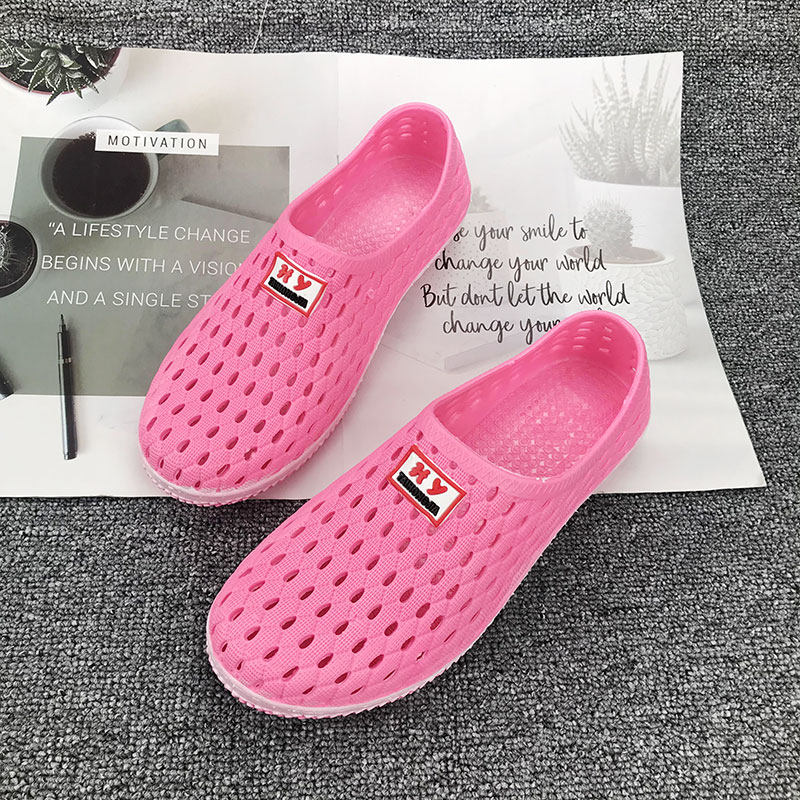 男 女ins可爱卡通夏情侣防滑厚底足弓凉拖沙滩鞋 细细条 护士洞洞鞋