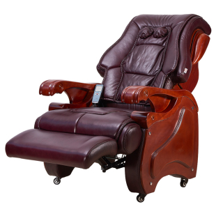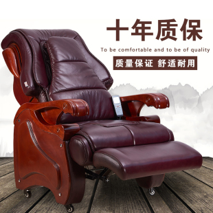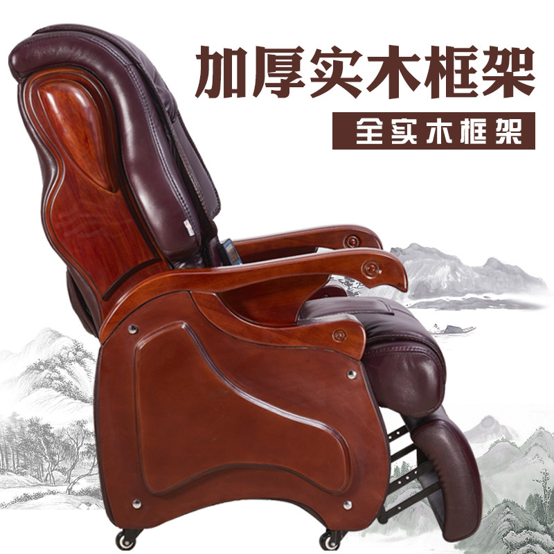 老板椅可躺按摩实木四脚牛皮椅总裁椅家用办公椅子真皮电动大班椅