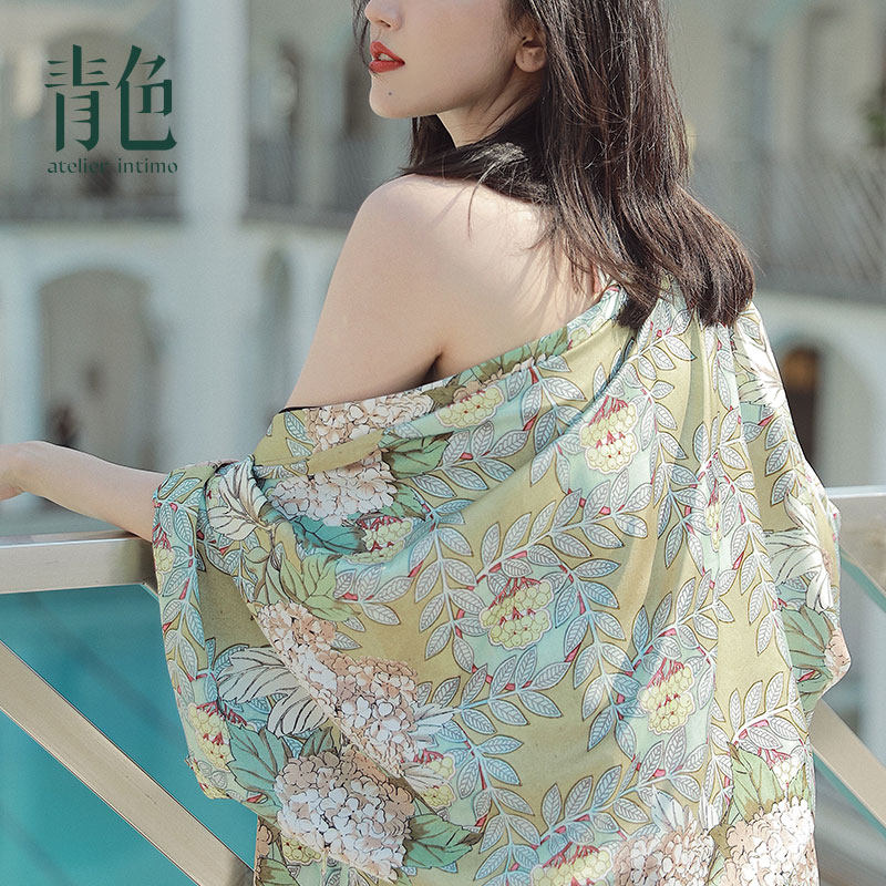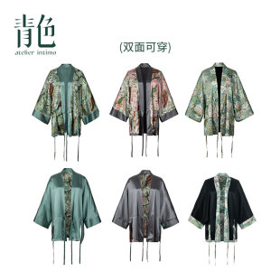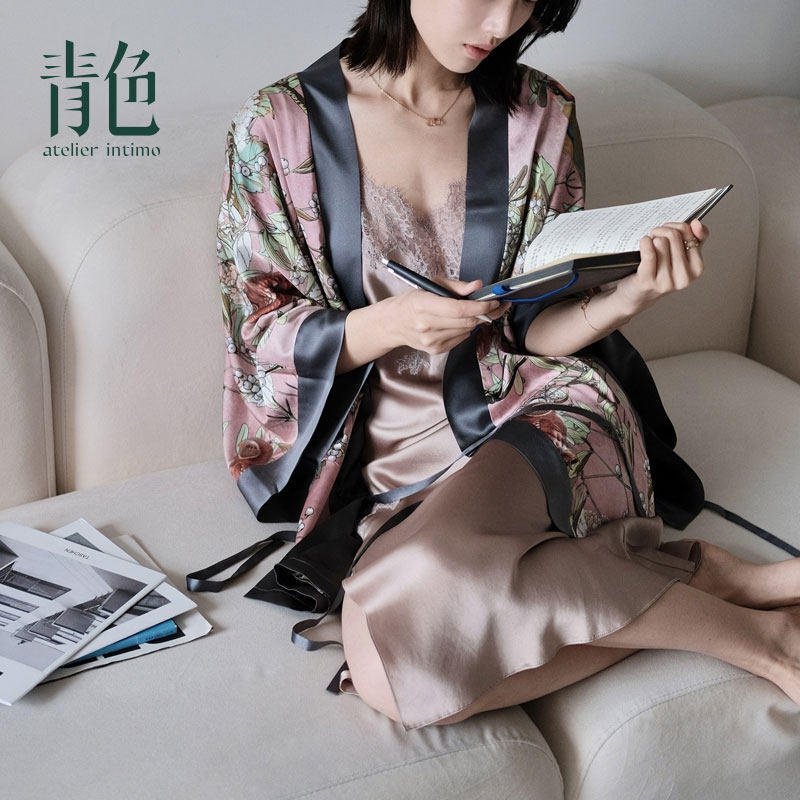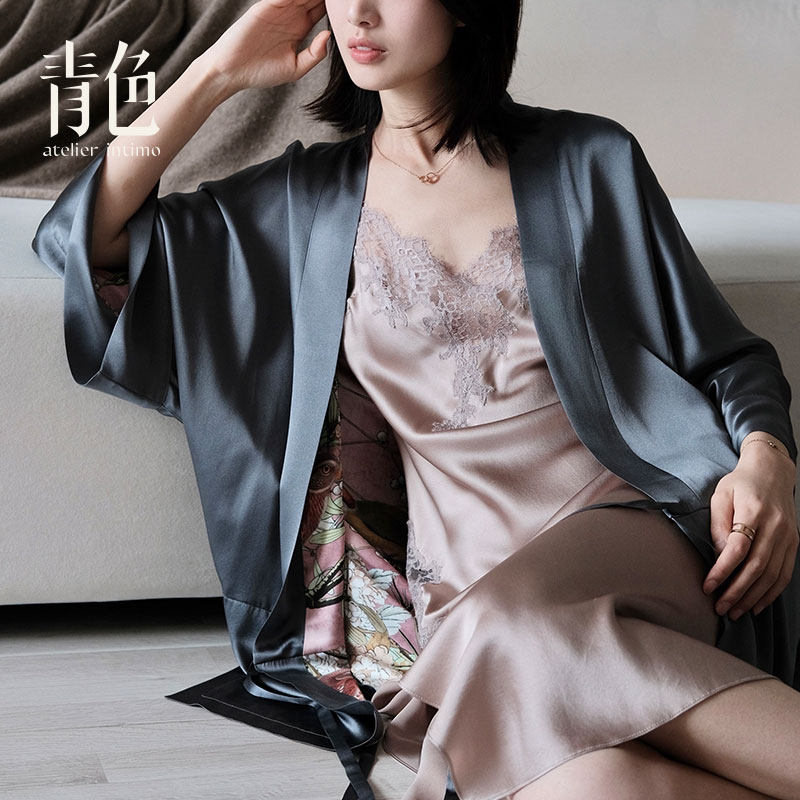青色atelierintimo很高兴认识你 中长睡袍 洛神桑蚕丝薄款