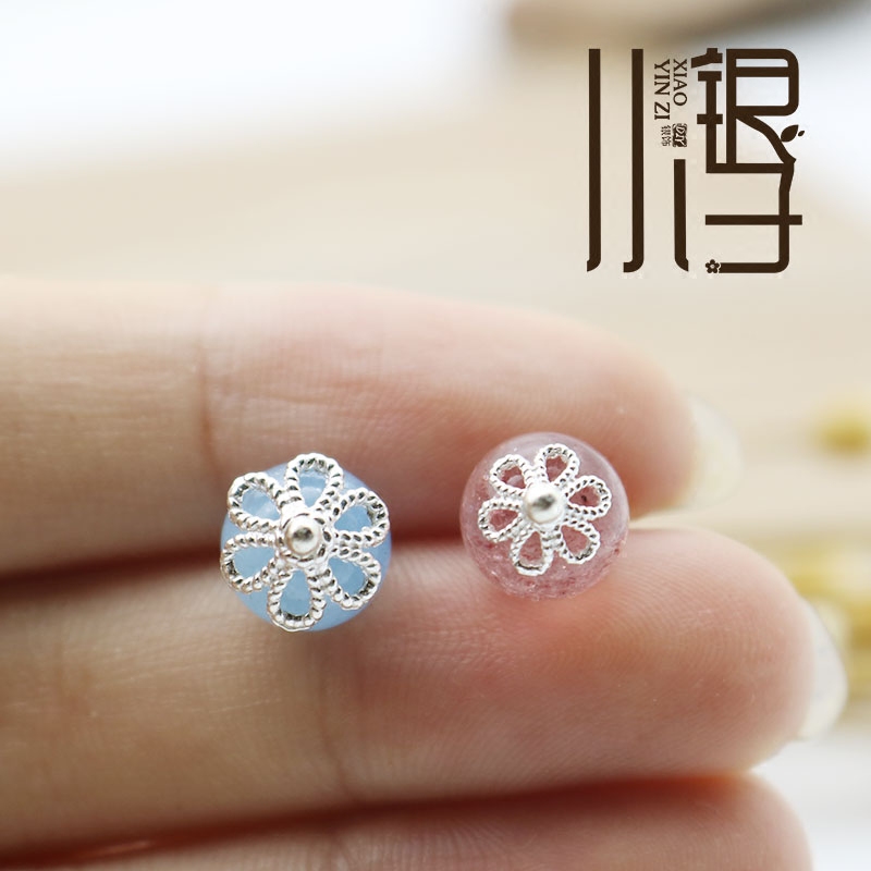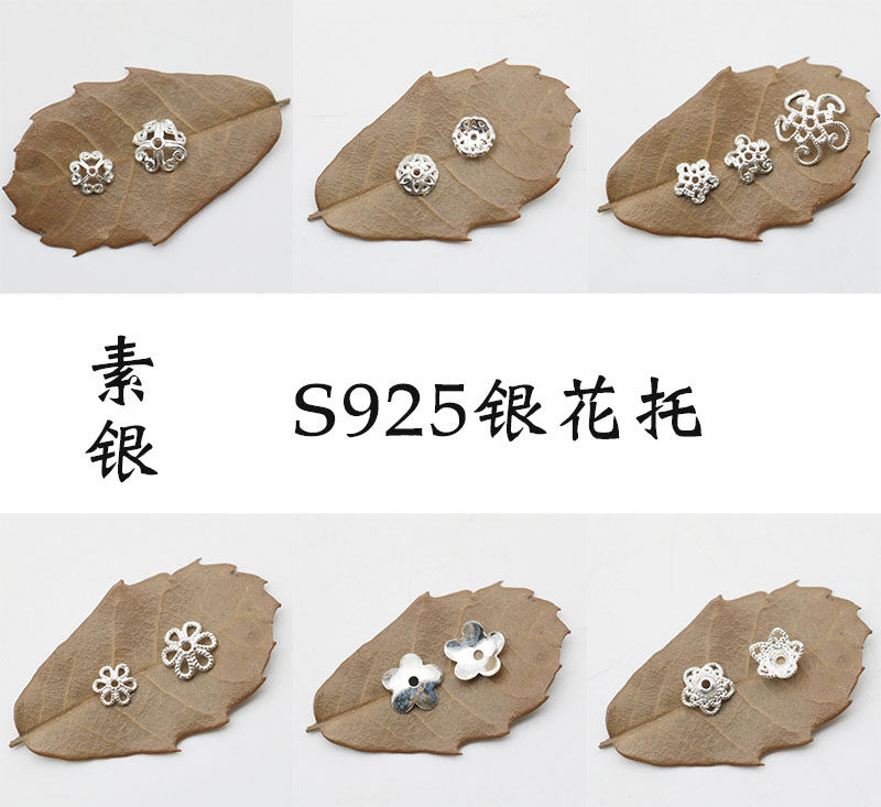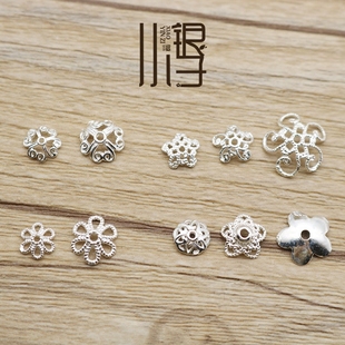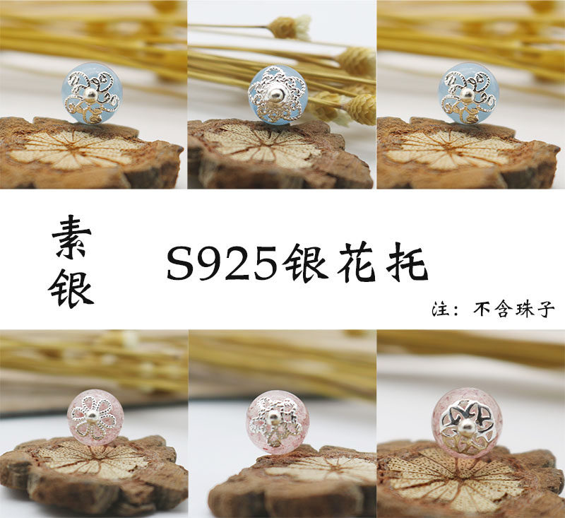 小银子银饰素银花托珠托流苏帽半包白色DIY水晶手链 925纯银配件