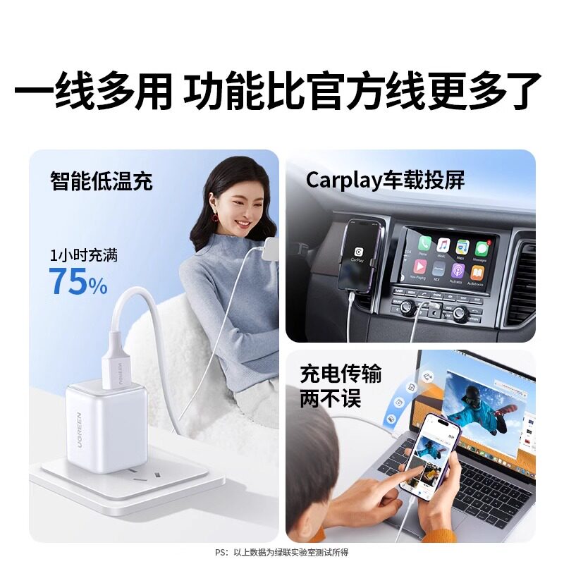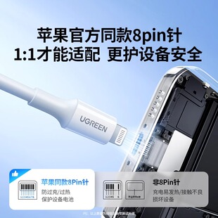 绿联iPhone13数据线mfi认证适用苹果11Pro12max8xr7plus6手机iPad平板pd快充短车载加长2米正品 usb充电器线