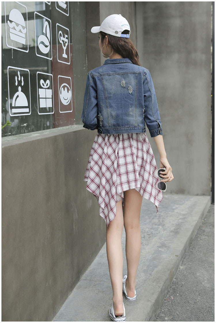 春秋牛仔服上衣破洞9 牛仔外套女短款 潮显瘦学生七分袖 韩版 修身