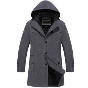 呢子大衣 保暖北方加绒加厚冬天毛呢休闲外套男士 风衣男冬季 中长款