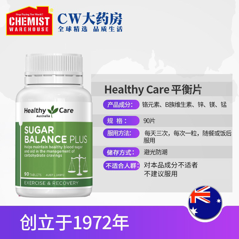 Healthy 素片血糖平衡片复合维生素锌铬均衡营养90片 Care铬元