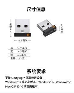 罗技优联无线键盘鼠标usb接收器m170m185m280m215m330m545m585m5900k240k270k375smk345mk235mk275g602适配器