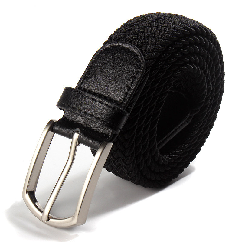 无孔年轻人弹力松紧编织学生腰带 时尚 黑色针扣帆布皮带男士 潮新款