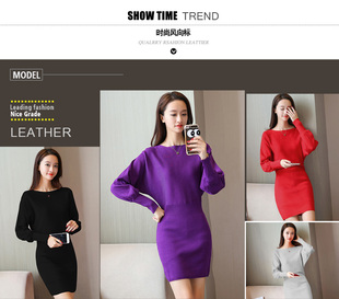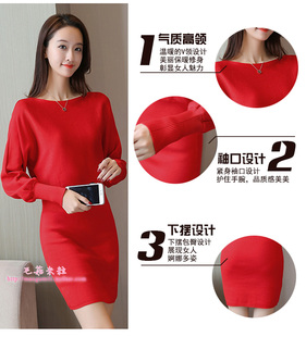韩版 2025新款 蝙蝠袖 大码 包臀显瘦毛衣针织连衣裙春秋冬打底裙 女装