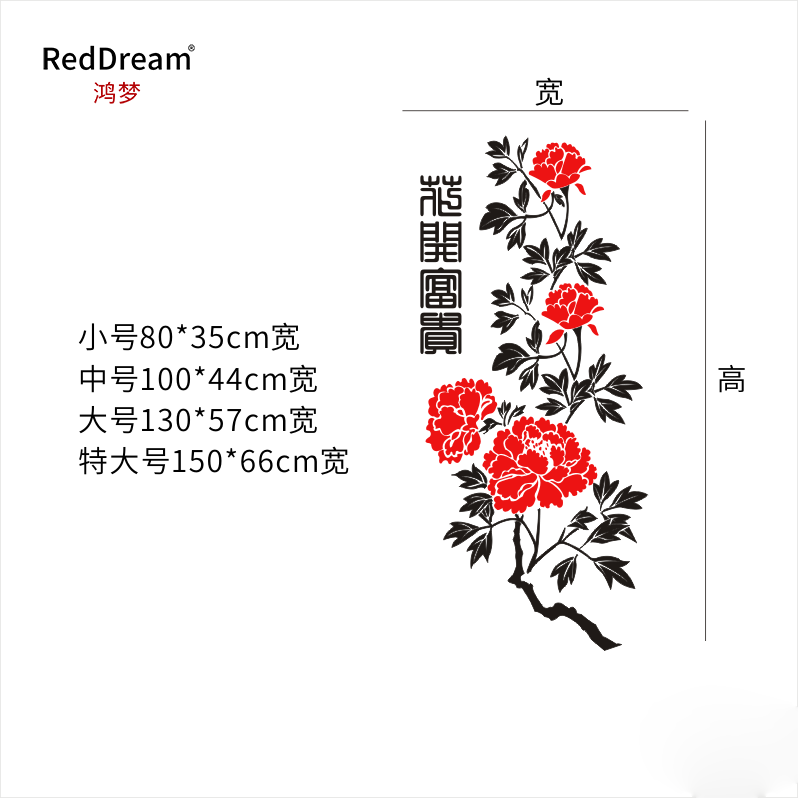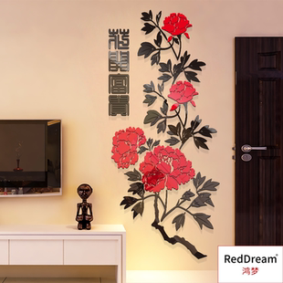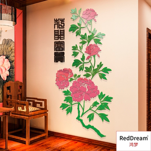 牡丹花中国风3D立体亚克力客厅卧室玄关背景墙水晶墙贴画房间墙壁