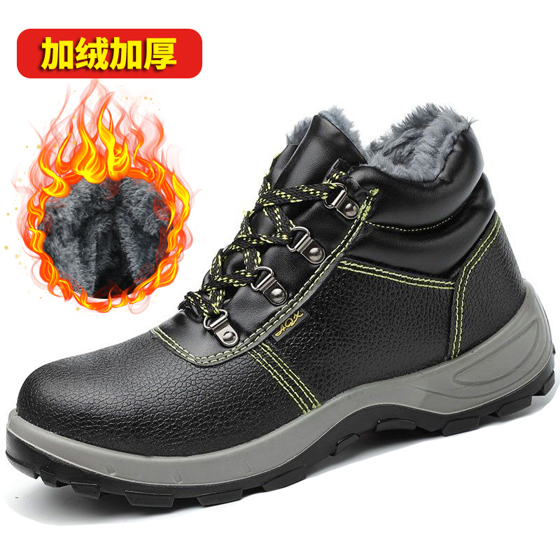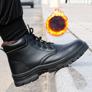 防砸防刺穿防寒保暖加厚防水安全工地鞋 加绒真皮棉鞋 男冬季 劳保鞋