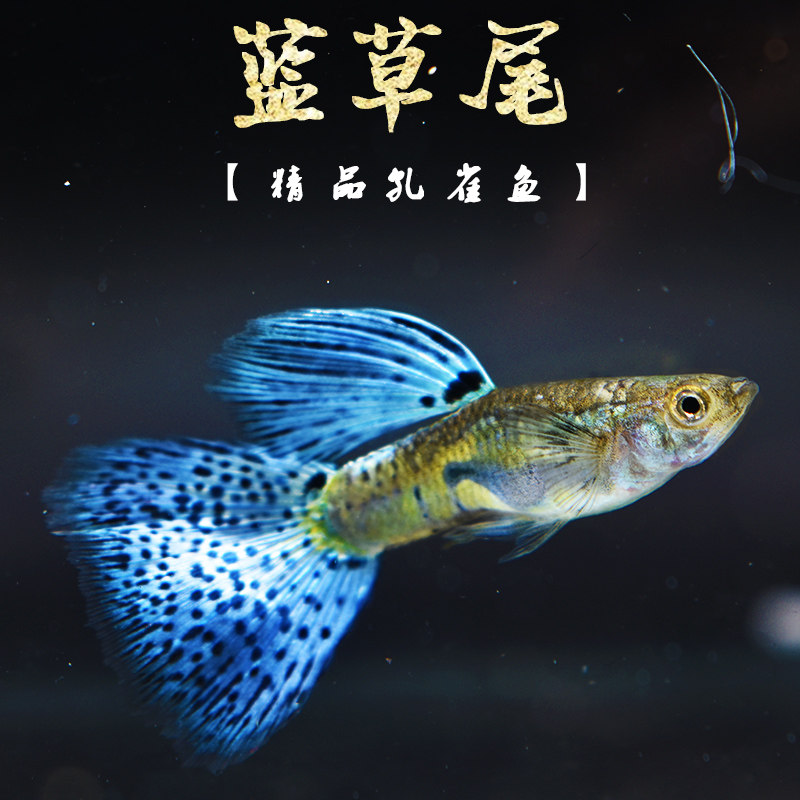 蓝草尾精品孔雀鱼 孔雀鱼活 热带观赏纯种日本兰草尾缎带宠物活体
