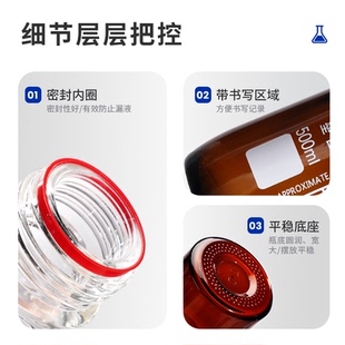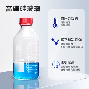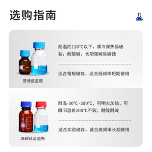 透明棕色螺口丝口瓶蓝盖瓶化学试剂瓶实验室玻璃瓶密封取样品瓶50 1000 100 500 2000ml 250 垒固蓝盖试剂瓶