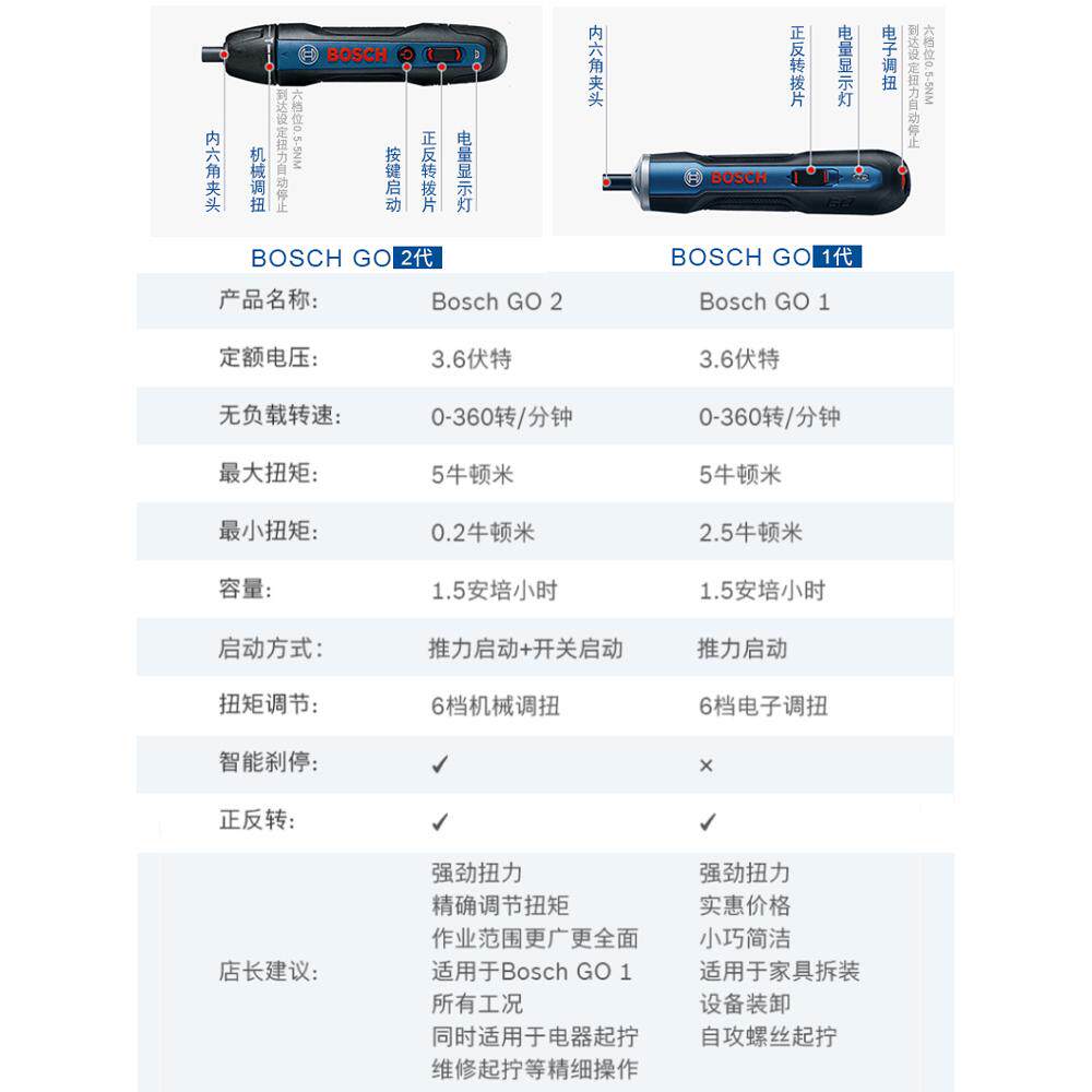 博世电动锂电螺丝刀迷你充电式 起子机多功能电螺丝批工具BoschGo3