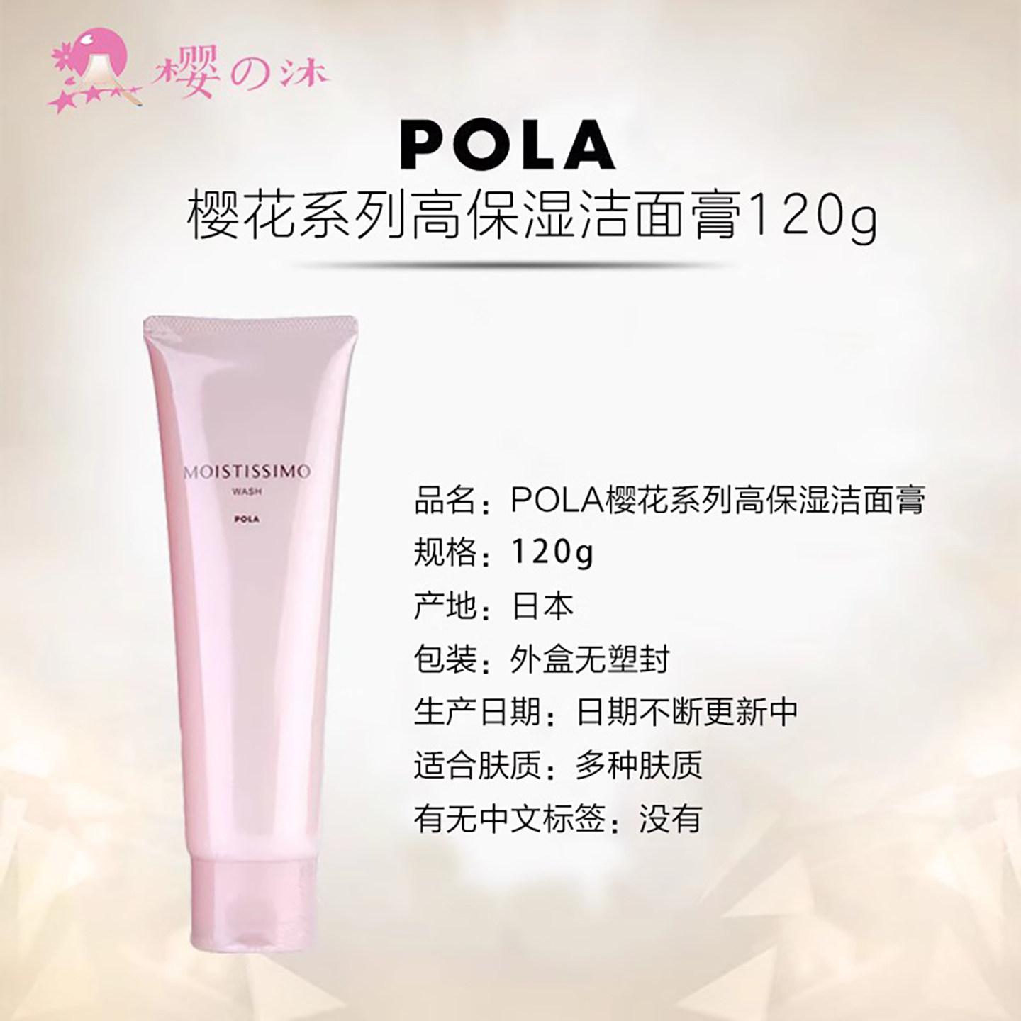 日本POLA宝丽MOISTISSIMO樱花洁面乳膏洗面奶女粉色补水保湿 清洁