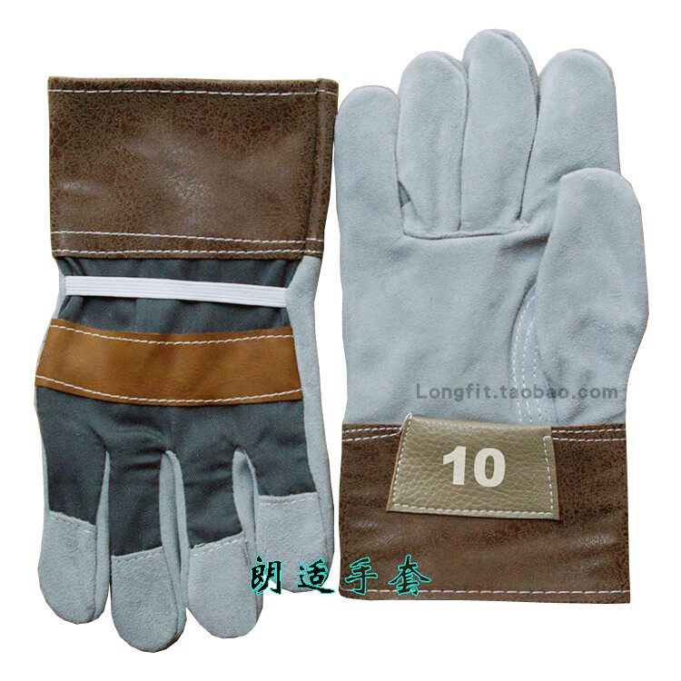 LONGFIT朗适短款 耐磨劳工工地防护扎铁牛皮半皮工作劳保耐用手套