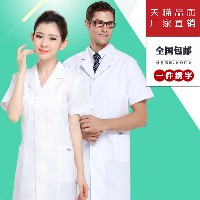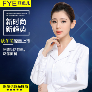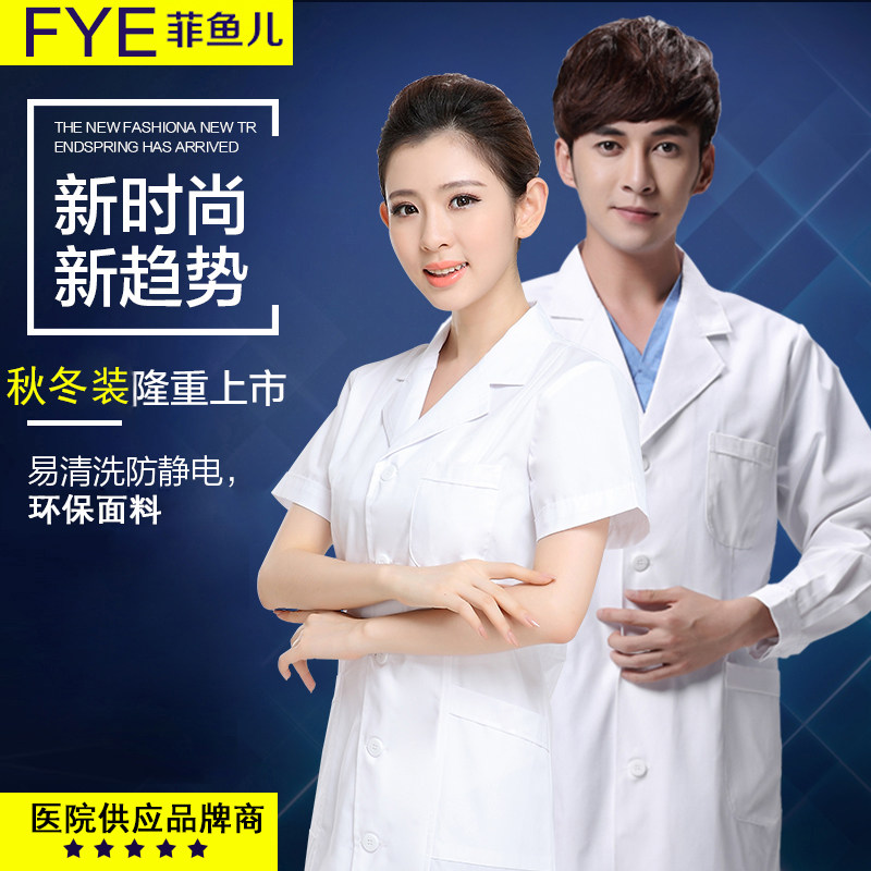 护师服药店美容院工作服 长袖 菲鱼儿白大褂短袖 女医生服实验室男士