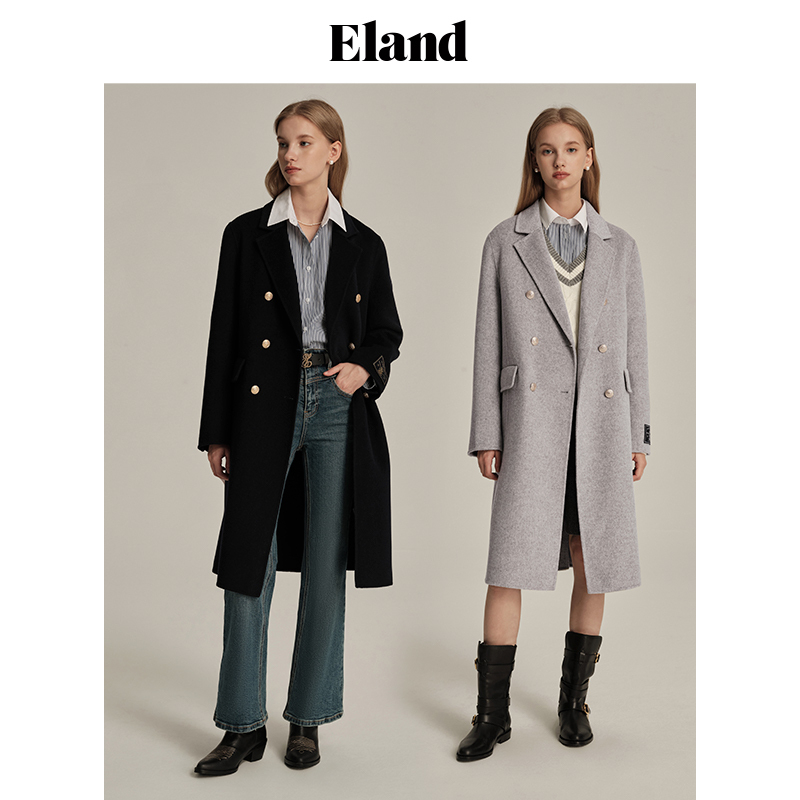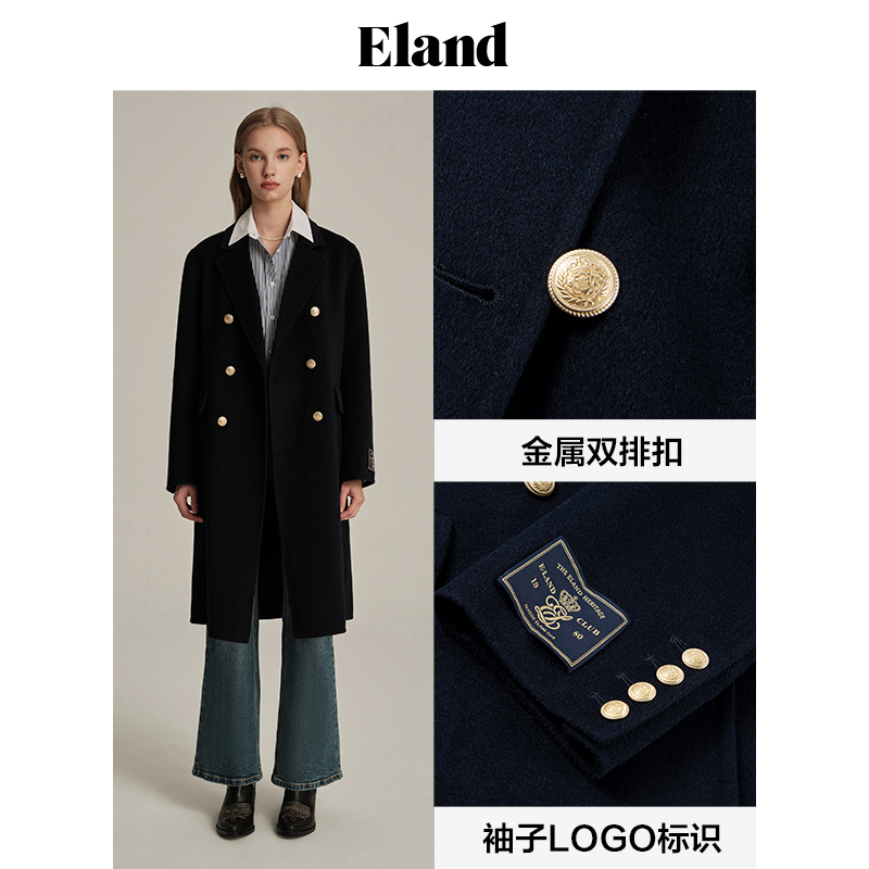 双面呢外套 Eland衣恋毛呢外套女长款 羊毛系列