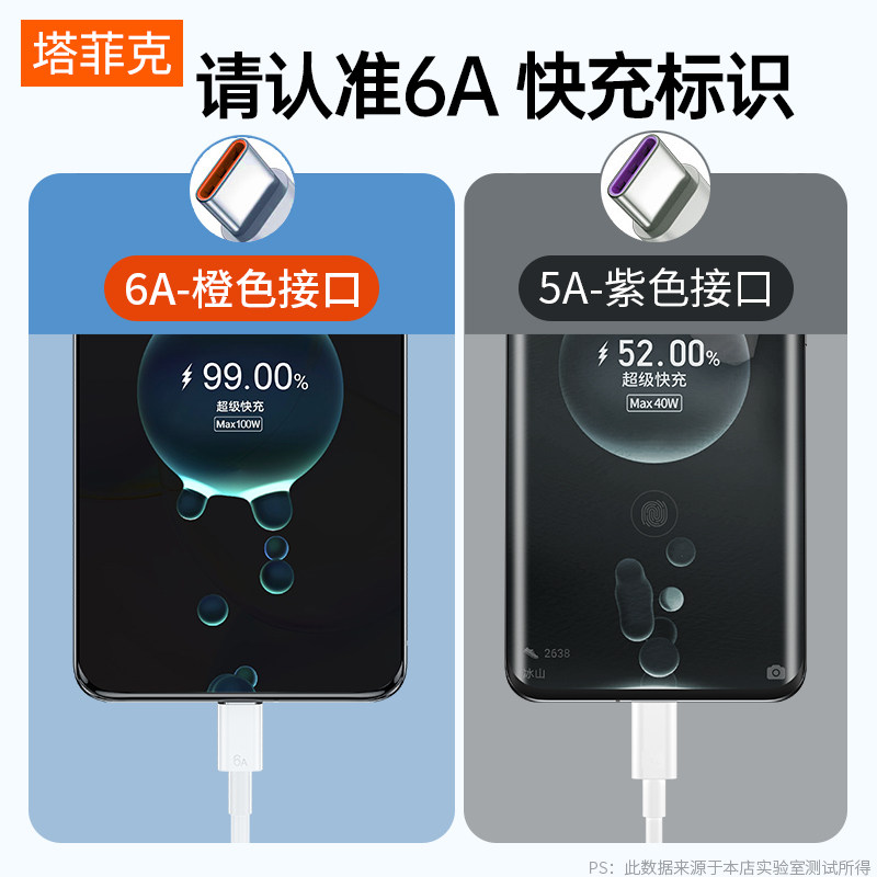 TAFIQtype c数据线适用于华为oppo荣耀vivo小米tpyec6A快充p3040mate60pro冲电nova手机tapyc充电线闪充typc