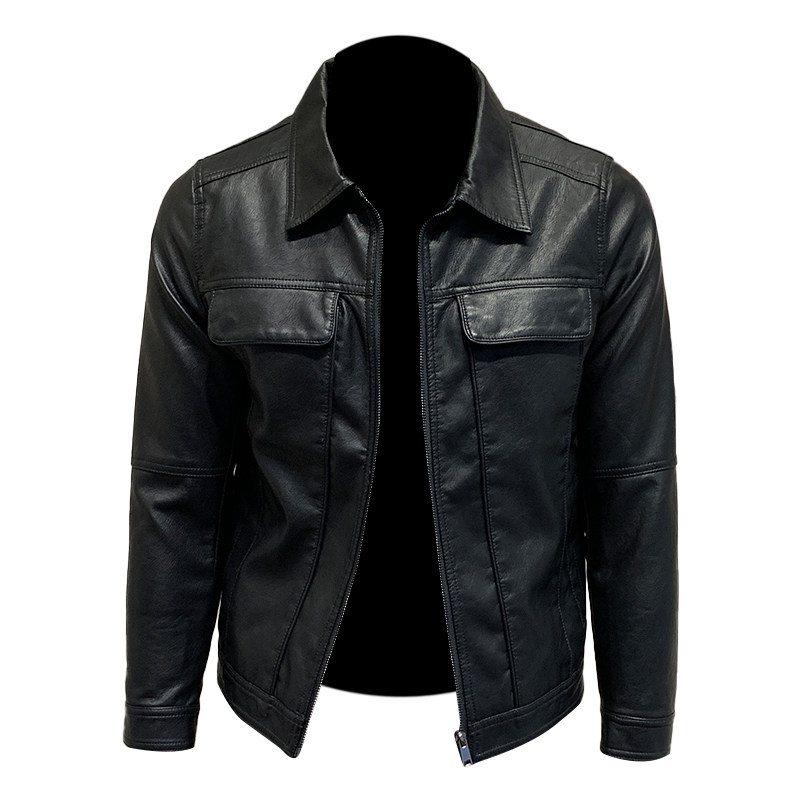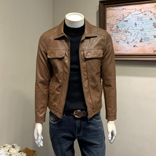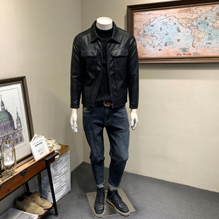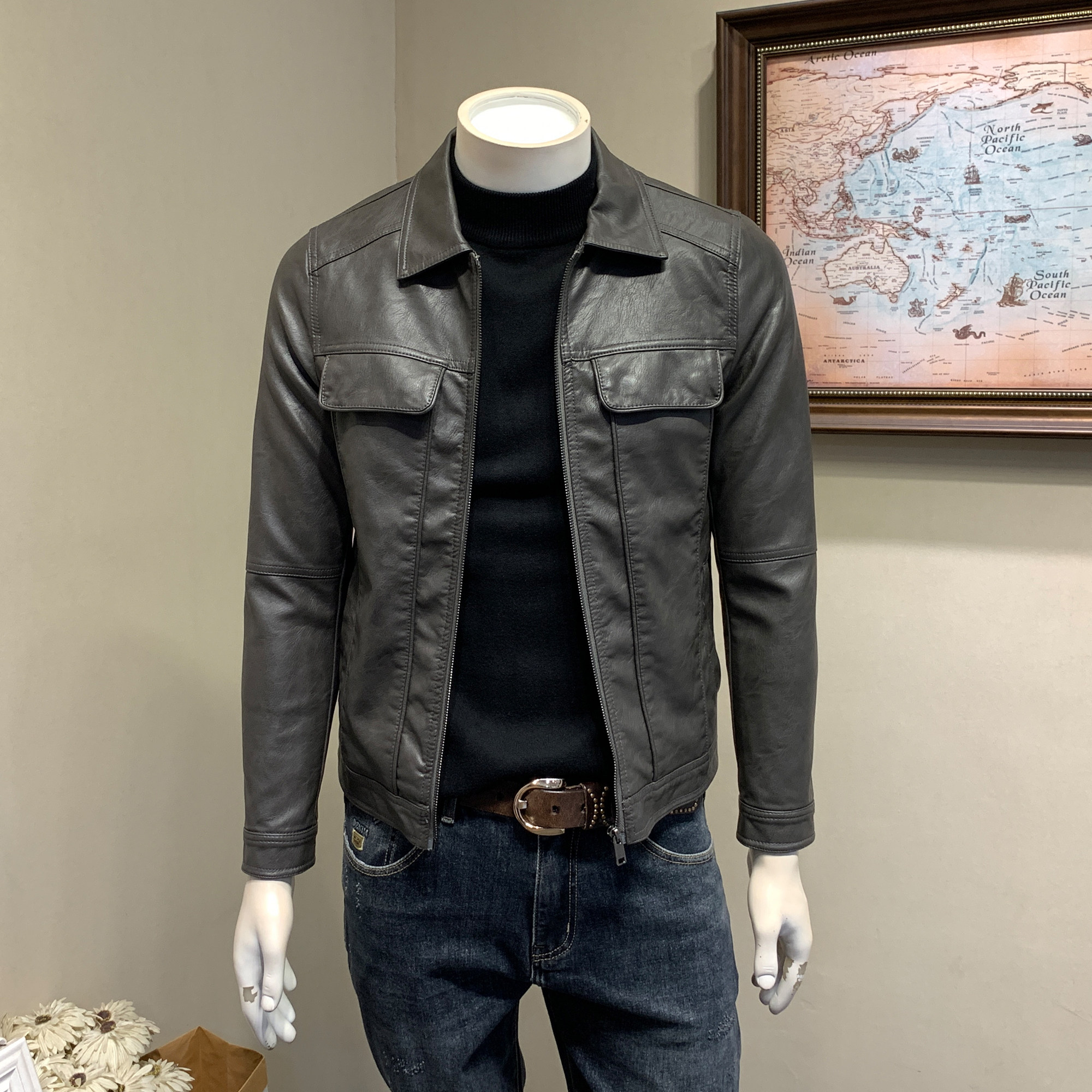 翻领工装 男士 加绒加厚春秋冬季 修身 外套PU男皮衣潮 机车皮夹克韩版
