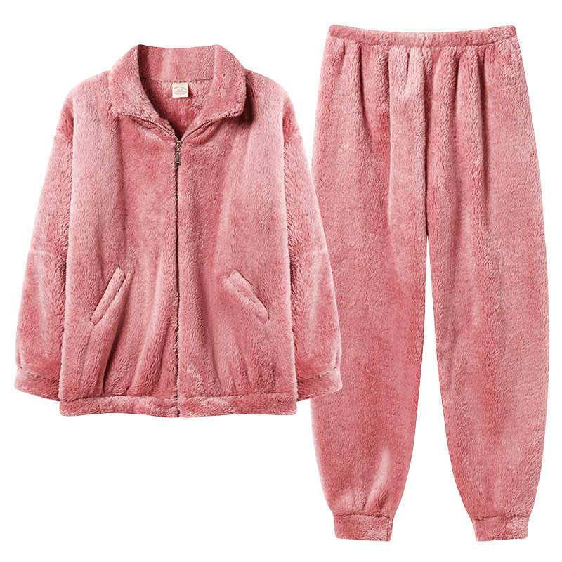 法兰绒保暖家居服套装 睡衣女士秋冬季 冬款 大码 加绒加厚珊瑚绒长袖