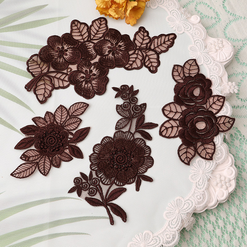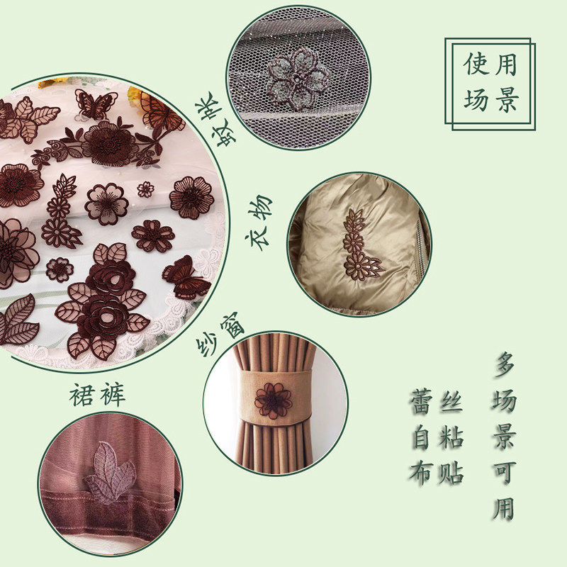 深咖蕾丝自粘婚纱旗袍破洞补丁贴羽绒服修补贴花雪纺衣服补洞修补