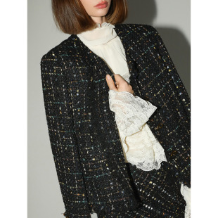 WL913 COCOBELLA小香风亮丝珠片编织粗花呢外套女西装 折扣季