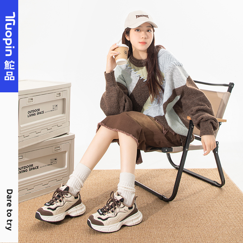 女款 骆驼女鞋 女加绒增高休闲黑色运动鞋 厚底老爹鞋 2025年秋冬新款