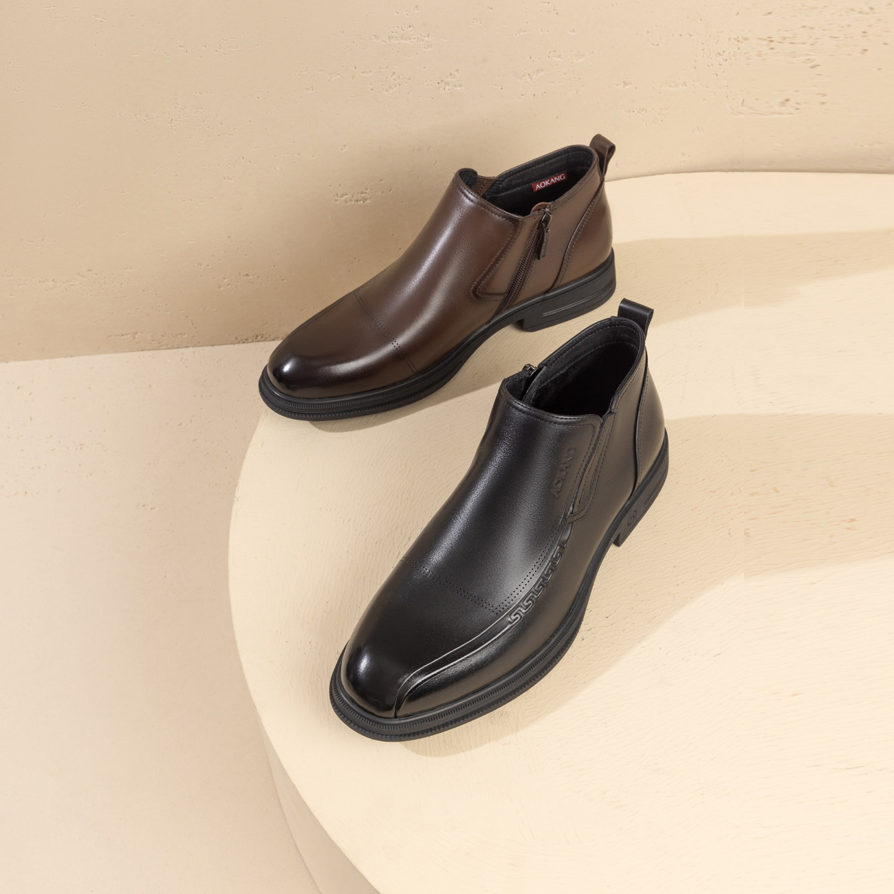加绒保暖时装 Aokang奥康 英伦风休闲舒适高帮皮鞋 新款 靴 冬季