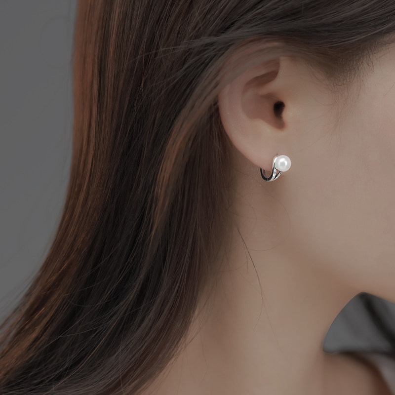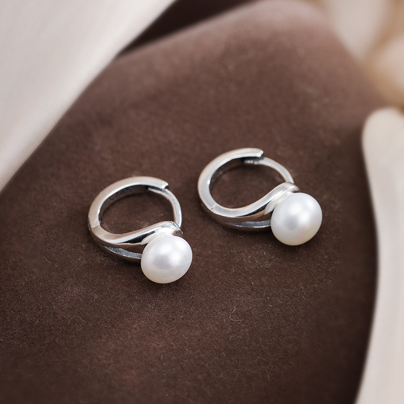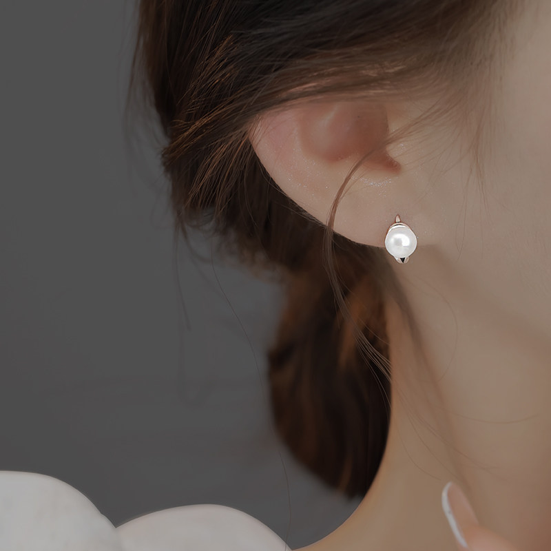 珍珠耳钉女士纯银999纯银耳钉新款 大澳白珍珠耳钉珍珠耳环女耳饰