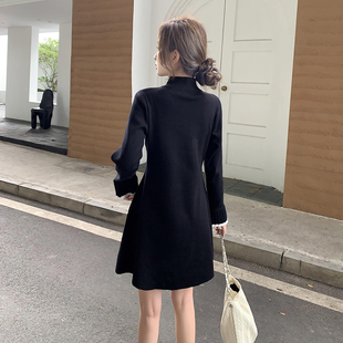 秋冬新款 打底小个子毛衣a字毛衣裙 内搭针织连衣裙女小黑裙中长款